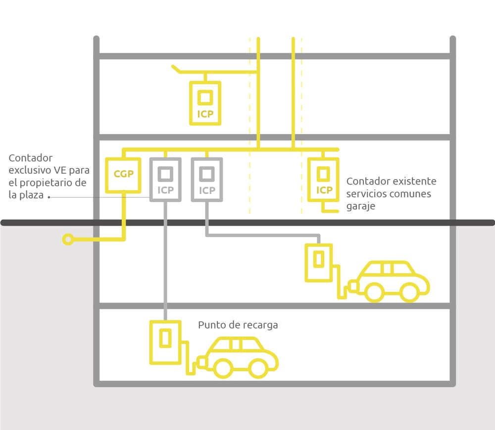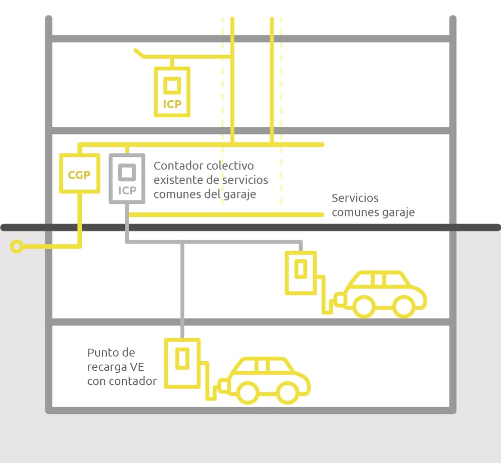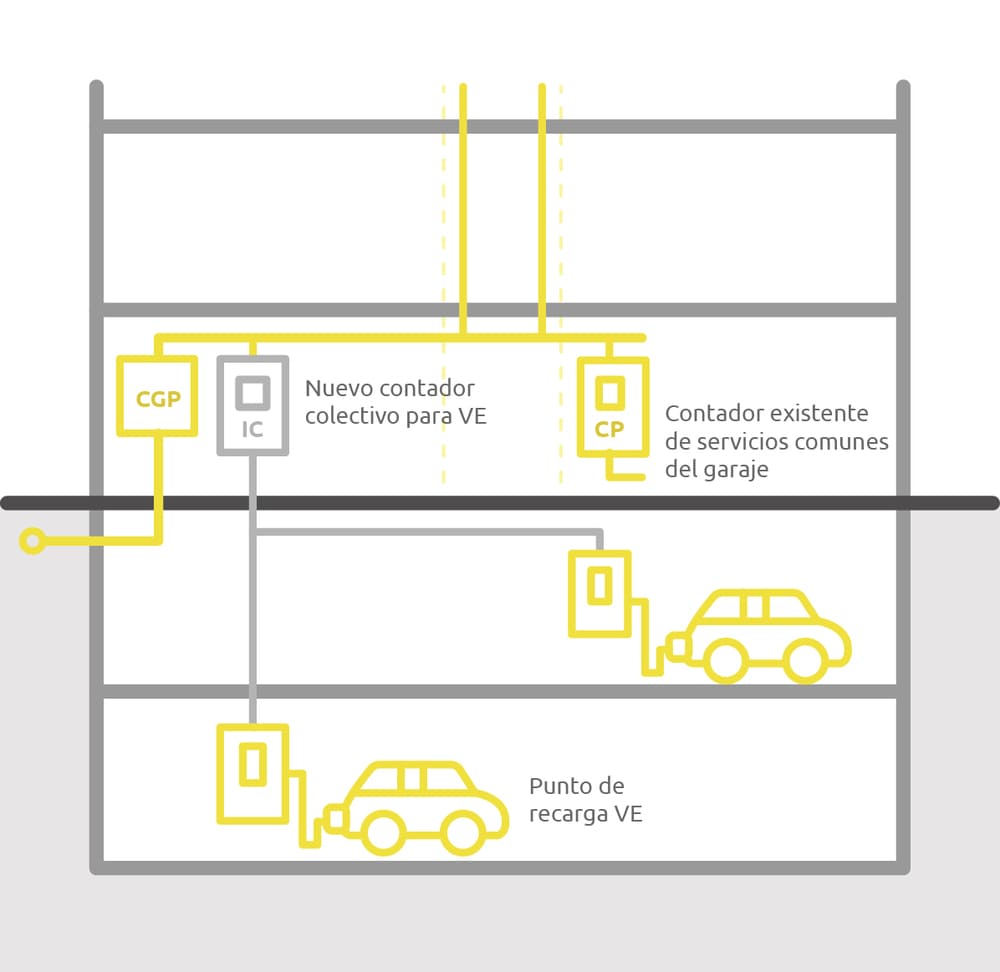 Opción 2: Un contador compartido para servicios comunes de garaje y puntos de recarga